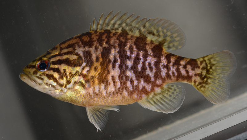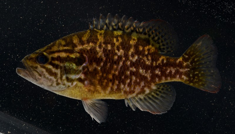Feeding: This is a naturally very secretive fish in nature but adapt quickly in captivity to beg for food like other sunfish. They are not picky eaters and will take a wide variety of high protein pellets or frozen foods such as blood worms, mysis shrimp, or krill. This is a species that can be fed live feeder fish, but it is not required.